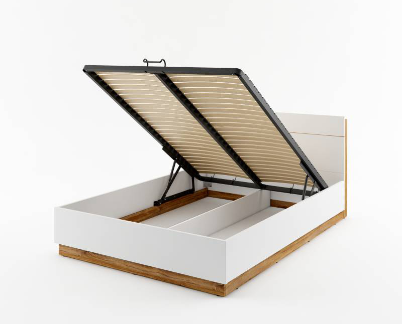 Doświadczony doradca klienta podpowiada:„Meble do sypialni to inwestycja na lata, więc przede wszystkim liczy się jakość wykonania. Solidna konstrukcja i dobre materiały zapewnią trwałość oraz bezpieczeństwo użytkowania”. W praktyce warto zwrócić uwagę, z czego wykonane są meble. Popularne i niedrogie zestawy sypialniane robi się z laminowanej płyty meblowej – jest ona lekka, odporna na zarysowania i nie wymaga specjalnej konserwacji (w przeciwieństwie do litego drewna). Jeśli zależy nam na ekonomicznym wyborze, taka opcja będzie odpowiednia. Przykładowo, nowoczesny system mebli sypialnianych Dentro oferuje łóżko i szafy z wytrzymałej płyty, o prostym designie, w kilku dekorach do wyboru. Łóżko Dentro z pojemnikiem na pościel oraz przesuwna szafa Dentro to duet, który zapewni komfort i dużo miejsca do przechowywania, nie rujnując budżetu. Pojemnik w łóżku pozwala schować kołdry i poduszki, oszczędzając przestrzeń w szafie, a drzwi przesuwne szafy świetnie sprawdzają się w niewielkich pokojach (nie potrzebują dodatkowego miejsca na otwieranie).